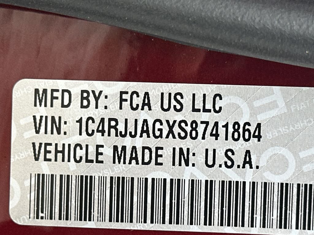 Quick Order Package 23B Altitude: Selectable Tire Fill Alert; Remote Start System; Rain Sensitive Windshield Wipers; Wireless Charging Pad; Heated Front Seats; Altitude Appearance Package; Black Headliner; Delete Laredo Badge; 3rd Row Charge-Only USB Ports; 115V Auxiliary Power Outlet; Gloss Black Exterior Accents; Capri Leatherette/suede Seats; Heated Steering Wheel; Power Liftgate. 20 X 8.5 Gloss Black Painted Aluminum Wheels. Velvet Red Pearlcoat. **Equipment listed is based on original vehicle build and subject to change. Please confirm the accuracy of the included equipment by calling the dealer prior to purchase.**