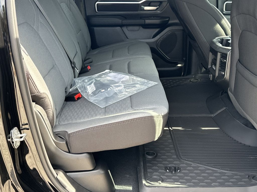 Quick Order Package 27Z Big Horn. Big Horn Level 2 Equipment Group: Google Android Auto; SiriusXM Radio Service; USB Host Flip; Power Adjustable Pedals; Leather Wrapped Steering Wheel; Integrated Voice Command with Bluetooth; 12 Touchscreen Display; Glove Box Lamp; Auto Power-Folding Mirrors; 115V Auxiliary Rear Power Outlet; Media Hub with 2 Charge Only USBs; Heated Front Seats; Security Alarm; Black Premium Power Mirrors; Apple CarPlay; Premium Overhead Console; 9 Amplified Speakers with Subwoofer; Disassociated Touchscreen Display; Body Color Fender Flares; Remote Tailgate Release; 115V Auxiliary Power Outlet; LED Dome Lamp with On/off Switch; Universal Garage Door Opener; 2nd Row in Floor Storage Bins; Sun Visors with Illuminated Vanity Mirrors; LED Footwell Lighting; Rear Window Defroster; Integrated Center Stack Radio; Rear View Auto Dim Mirror; Rear Power Sliding Window; Connectivity - US/Canada; GPS Navigation; 4G LTE Wi-Fi Hot Spot; GPS Antenna Input; Overhead LED Lamps; Exterior Mirrors with Heating Element; Auto Dim Exterior Driver Mirror; SiriusXM with 360L; Global Telematics Box Module; Connected Travel and Traffic Services; Heated Steering Wheel; Black Exterior Mirrors; Configurable Drive Mode; 400W Inverter; HD Radio; Deluxe Cloth Bucket Seats; Uconnect 5 Navigation with 12.0 Display Radio; Exterior Mirrors with Supplemental Signals; Steering Wheel Mounted Audio Controls; Exterior Mirrors Courtesy Lamps; Air Conditioning ATC with Dual Zone Control; Cluster 7.0 TFT Color Display; Convex Wide-Angle Exterior Mirror Insert. Towing Technology Group: Trailer Hitch Line-Up Assist. Trailer Tow Group: Trailer Light Check; Trailer Brake Control; Accent Color Tailgate Handle; Trailer Reverse Steering Control; Trailer Tire Pressure Monitoring System; Black Trailer Tow Power Mirrors. Quick Order Package 23Z Big Horn. 20 X 9 Aluminum Chrome Clad Wheels. RamBox Cargo Management System. 9 Amplified Speakers with Subwoofer. Surround View Camera System. 33 Gallon Fuel Tank. Trailer Brake Control. Diamond Black Crystal PC. Cluster 12 TFT Color Display. Black Trailer Tow Power Mirrors. MyFlexCare Service Plan. MOPAR Front and Rear Rubber Floor Mats. 3.92 Rear Axle Ratio. Rear Wheelhouse Liners. **Equipment listed is based on original vehicle build and subject to change. Please confirm the accuracy of the included equipment by calling the dealer prior to purchase.**