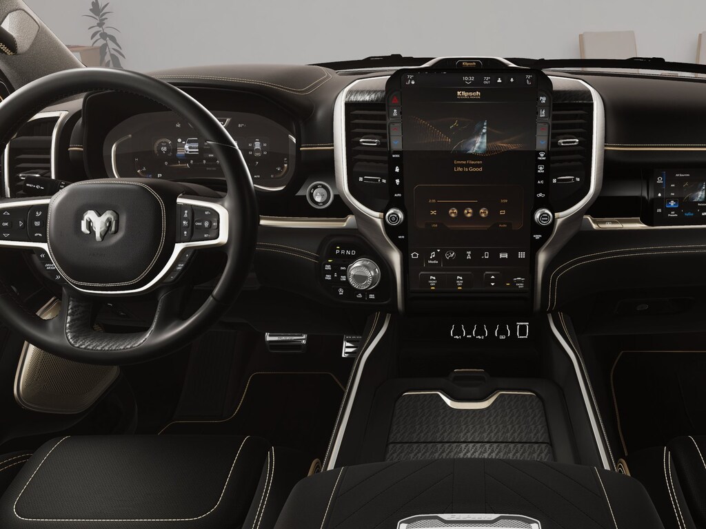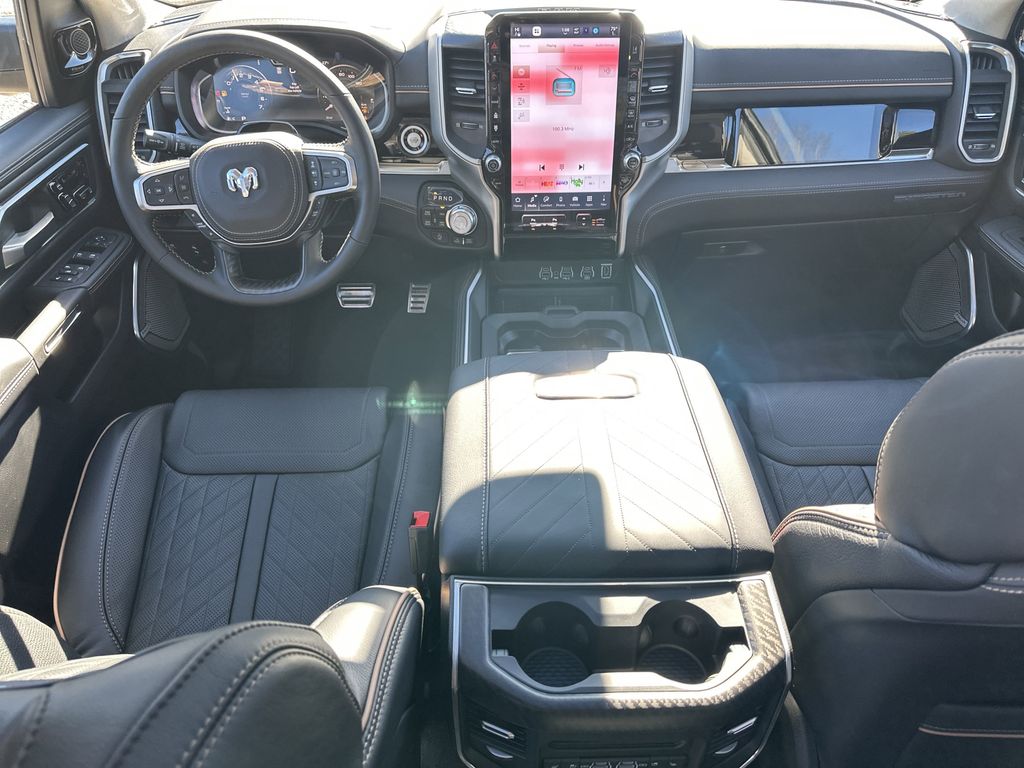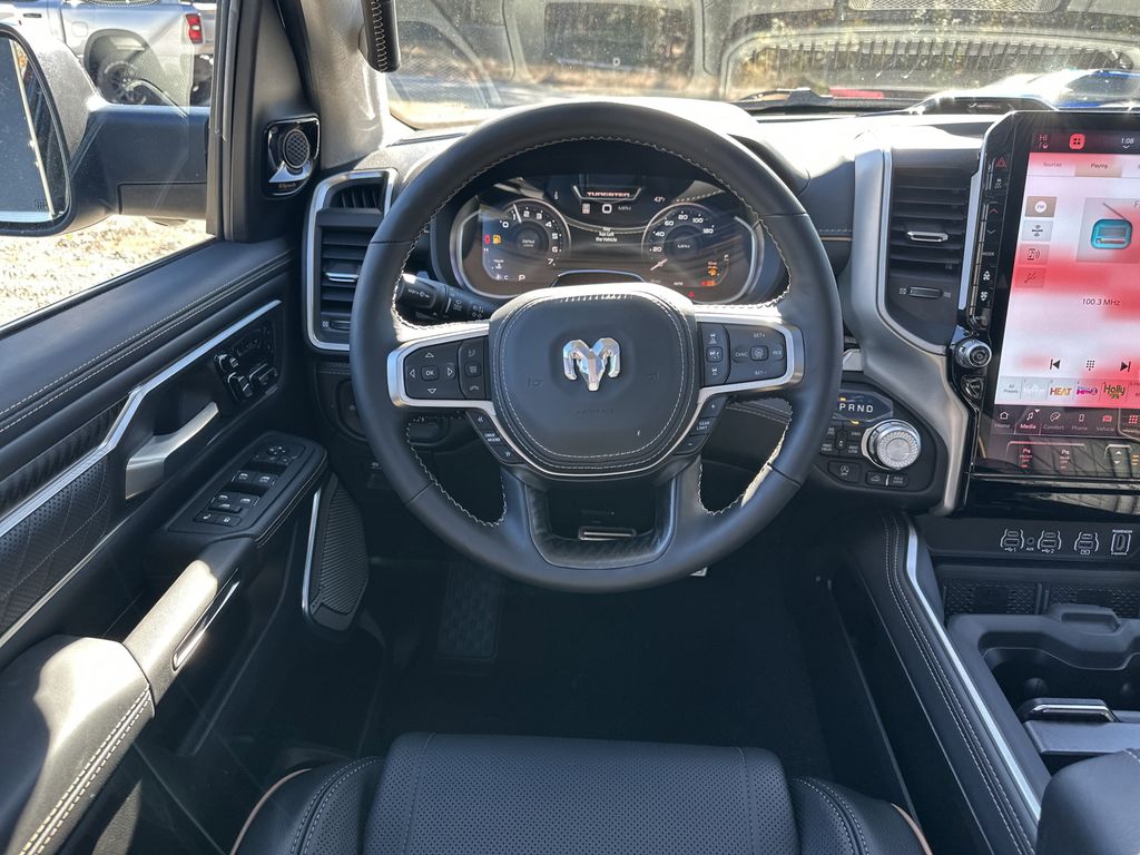 Apple CarPlay: Seamless smartphone integration for this model - stay connected and entertained on the go! Start this Ram 1500 from inside with remote start. This unit features a hands-free Bluetooth phone system. This vehicle offers Android Auto for seamless smartphone integration. This model has auto-adjust speed for safe following. The leather seats in this unit are a must for buyers looking for comfort, durability, and style. You'll never again be lost in a crowded city or a country region with the navigation system on this model. Protect this 2026 Ram 1500 from unwanted accidents with a cutting edge backup camera system. Keep your hands warm all winter with a heated steering wheel in it . This 1/2 ton pickup has four wheel drive capabilities. This 1/2 ton pickup has a 6 Cyl, 3.0L high output engine. It is painted with a sleek and sophisticated black color. The vehicle features cruise control for long trips.