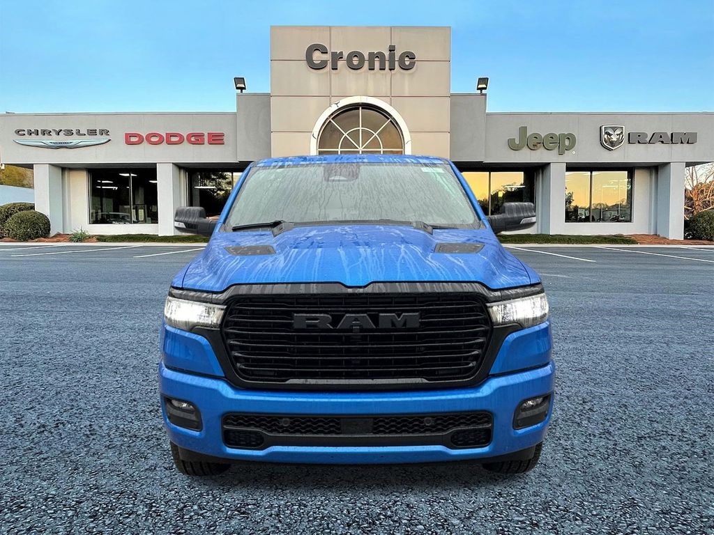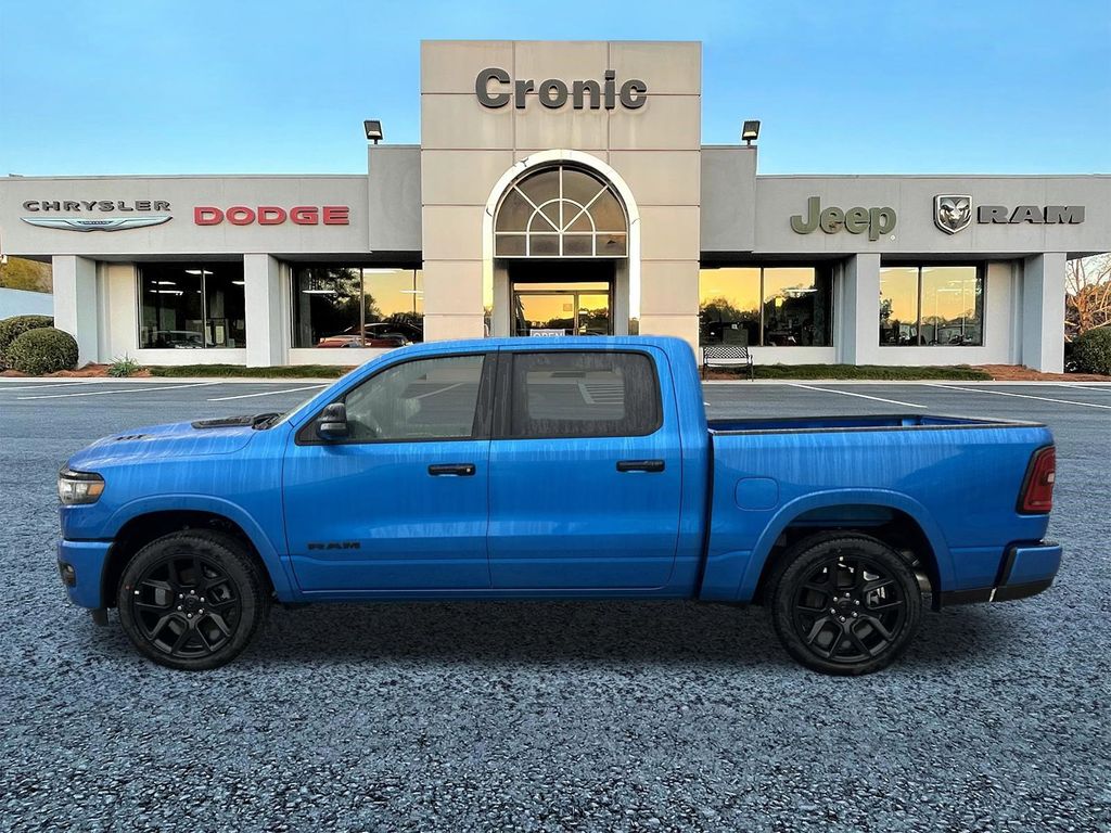 Quick Order Package 21H Laramie. Laramie Level 1 Equipment Group: Remote Tailgate Release; Rain Sensitive Windshield Wipers. Night Edition: Black Headlamp Bezels; Auto Power-Folding Mirrors; 22 X 9 Forged Aluminum Wheels; Exterior Mirrors with Heating Element; Proximity Approach/departure Lamps; Auto Dim Exterior Driver Mirror; Anti-Spin Differential Rear Axle; Accent Color Door Handles; Black Interior Accents; Body Color Front Bumper; Grille Surround 3 Black Texture 2 Black; Body Color Rear Bumper with Step Pads; RAM Grille Badge - Black; Black Painted Exterior Mirrors Caps; Exterior Mirrors Approach Lamps; Accent Color Premium Power Mirrors; Exterior Mirrors with Supplemental Signals; Sport Performance Hood; Exterior Mirrors Courtesy Lamps; Black Exterior Truck Badging; Accent Color Tailgate Handle; Exterior Mirrors with Memory; Dual Exhaust with Black Tips; Convex Wide-Angle Exterior Mirror Insert; Black Tail Lamp Bezels. 22 X 9 Forged Aluminum Wheels. Dual-Pane Panoramic Sunroof. Anti-Spin Differential Rear Axle. Hydro Blue Pearlcoat. MyFlexCare Service Plan. MOPAR Front and Rear Rubber Floor Mats. 3.92 Rear Axle Ratio. **Equipment listed is based on original vehicle build and subject to change. Please confirm the accuracy of the included equipment by calling the dealer prior to purchase.**