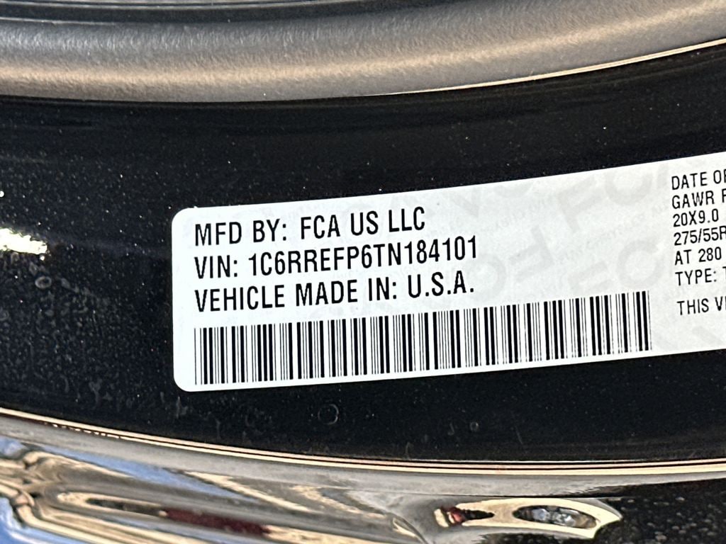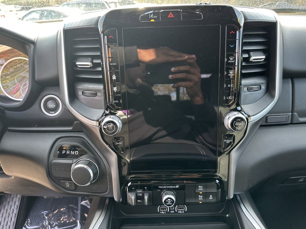 Quick Order Package 21Z Big Horn. Big Horn Level 2 Equipment Group: Google Android Auto; SiriusXM Radio Service; USB Host Flip; Power Adjustable Pedals; Leather Wrapped Steering Wheel; Integrated Voice Command with Bluetooth; 12 Touchscreen Display; Glove Box Lamp; Auto Power-Folding Mirrors; 115V Auxiliary Rear Power Outlet; Media Hub with 2 Charge Only USBs; Heated Front Seats; Security Alarm; Black Premium Power Mirrors; Apple CarPlay; Premium Overhead Console; 9 Amplified Speakers with Subwoofer; Disassociated Touchscreen Display; Body Color Fender Flares; Remote Tailgate Release; 115V Auxiliary Power Outlet; LED Dome Lamp with On/off Switch; Universal Garage Door Opener; 2nd Row in Floor Storage Bins; Sun Visors with Illuminated Vanity Mirrors; LED Footwell Lighting; Rear Window Defroster; Integrated Center Stack Radio; Rear View Auto Dim Mirror; Rear Power Sliding Window; Connectivity - US/Canada; GPS Navigation; 4G LTE Wi-Fi Hot Spot; GPS Antenna Input; Overhead LED Lamps; 20 X 9 Aluminum Chrome Clad Wheels; Exterior Mirrors with Heating Element; Auto Dim Exterior Driver Mirror; SiriusXM with 360L; Global Telematics Box Module; Connected Travel and Traffic Services; Heated Steering Wheel; Black Exterior Mirrors; Configurable Drive Mode; 400W Inverter; HD Radio; Deluxe Cloth Bucket Seats; Uconnect 5 Navigation with 12.0 Display Radio; Exterior Mirrors with Supplemental Signals; Steering Wheel Mounted Audio Controls; Exterior Mirrors Courtesy Lamps; Air Conditioning ATC with Dual Zone Control; Cluster 7.0 TFT Color Display; Convex Wide-Angle Exterior Mirror Insert. Towing Technology Group: Trailer Hitch Line-Up Assist. Trailer Tow Group: Trailer Light Check; Trailer Brake Control; Accent Color Tailgate Handle; Trailer Reverse Steering Control; Trailer Tire Pressure Monitoring System; Black Trailer Tow Power Mirrors. Quick Order Package 23Z Big Horn. 20 X 9 Aluminum Chrome Clad Wheels. Multi-Function Tailgate. 9 Amplified Speakers with Subwoofer. Anti-Spin Differential Rear Axle. Trailer Brake Control. Diamond Black Crystal PC. Black Trailer Tow Power Mirrors. MOPAR Front and Rear Rubber Floor Mats. 3.92 Rear Axle Ratio. **Equipment listed is based on original vehicle build and subject to change. Please confirm the accuracy of the included equipment by calling the dealer prior to purchase.**