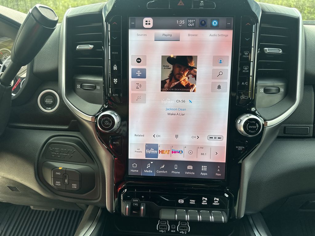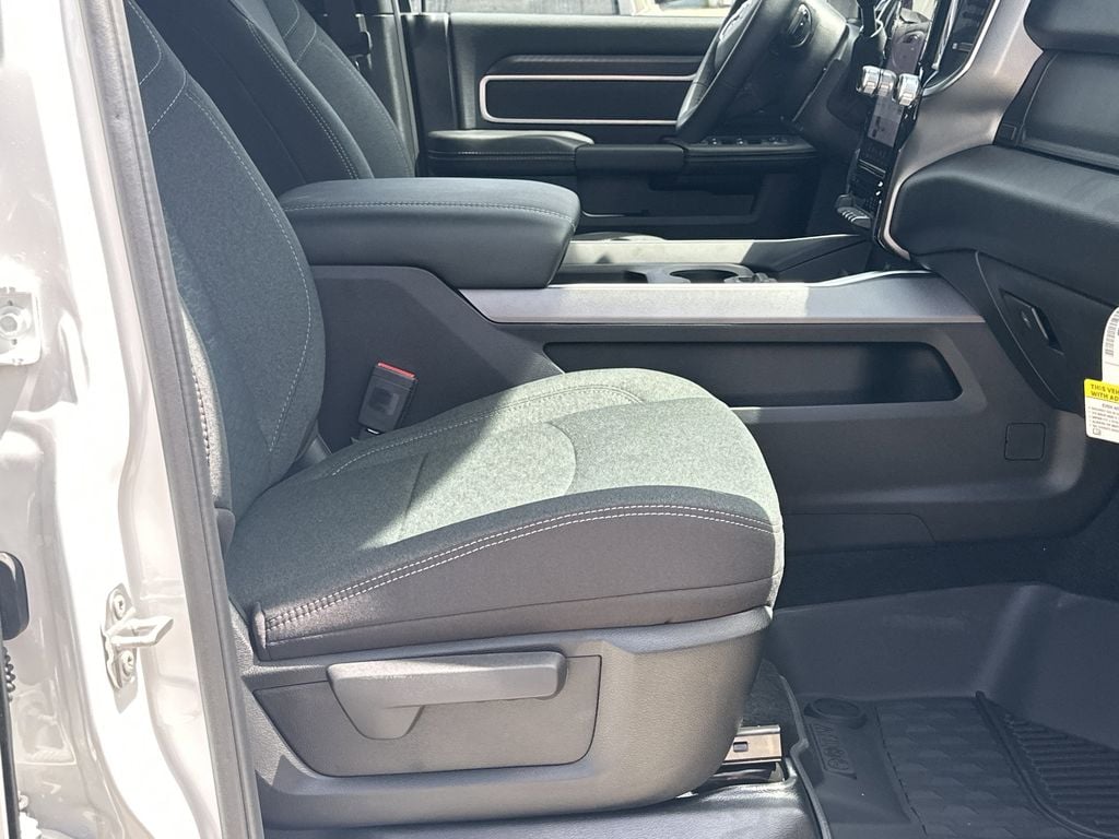 Quick Order Package 24Z Big Horn. Night Edition: Firestone Brand Tires; Gloss Black Nostrils/mic Black Grille; LT285/60R20E OWL On/off Road Tires; Black Exterior Truck Badging; 20 X 8.0 Black Painted Aluminum Wheels; Body Color Grille-Surround; Black Interior Accents; Black Wheel Center Hub; Painted Front Bumper; Painted Rear Bumper. Big Horn Level 1 Plus Equipment Group: Google Android Auto; SiriusXM Radio Service; For Details. Visit DriveUconnect.com; For More Info. Call 800-643-2112; Integrated Voice Command with Bluetooth; Emergency Vehicle Alert System (EVAS); 12 Touchscreen Display; Glove Box Lamp; Auto Power-Folding Mirrors; Footwell Courtesy Lamp; Anti-Spin Differential Rear Axle; Mirror Running Lights; MOPAR Deployable Bed Step; Alexa Built-In; Apple CarPlay; Power-Adjustable Convex Aux Mirrors; Forward and Reverse Utility Lights; Locking Lower Glove Box; Remote Start System; 9 Alpine Speakers with Subwoofer; Disassociated Touchscreen Display; Dual Glove Boxes; 2nd Row in Floor Storage Bins; Rear View Auto Dim Mirror; Rear Dome with On/off Switch Lamp; LED Bed Lighting; Connectivity - US/Canada; GPS Navigation; 4G LTE Wi-Fi Hot Spot; GPS Antenna Input; Exterior Mirrors with Heating Element; SiriusXM with 360L; Global Telematics Box Module; Connected Travel and Traffic Services; Foam Bottle Insert (door Trim Panel); Black Exterior Mirrors; Big Horn Instrument Panel Badge; Off-Road Info Pages; Selectable Tire Fill Alert; Trailer Tow Pages; HD Radio; Uconnect 5 Navigation with 12.0 Display Radio; Power Heated Folding Telescopic Mirrors; Exterior Mirrors with Supplemental Signals; Steering Wheel Mounted Audio Controls; Exterior Mirrors Courtesy Lamps; Air Conditioning ATC with Dual Zone Control; MOPAR Spray in Bedliner; Power Adjust Mirrors; Luxury Steering Wheel; Power Telescoping Mirrors. Quick Order Package 2UZ Big Horn. 5th Wheel/gooseneck Towing Prep Group. Anti-Spin Differential Rear Axle. MyFlexCare Service Diesel. Premium Cloth Bucket Seats. Remote Start System. MOPAR Front and Rear Rubber Floor Mats. Power 2-Way Driver Lumbar Adjust. **Equipment listed is based on original vehicle build and subject to change. Please confirm the accuracy of the included equipment by calling the dealer prior to purchase.**