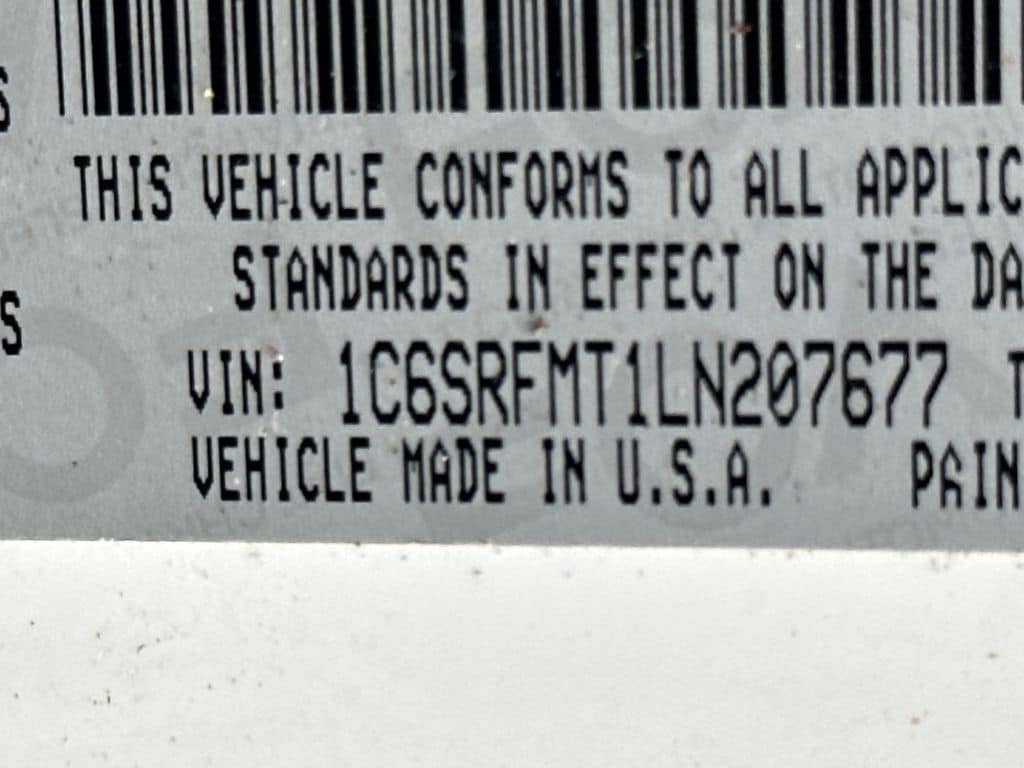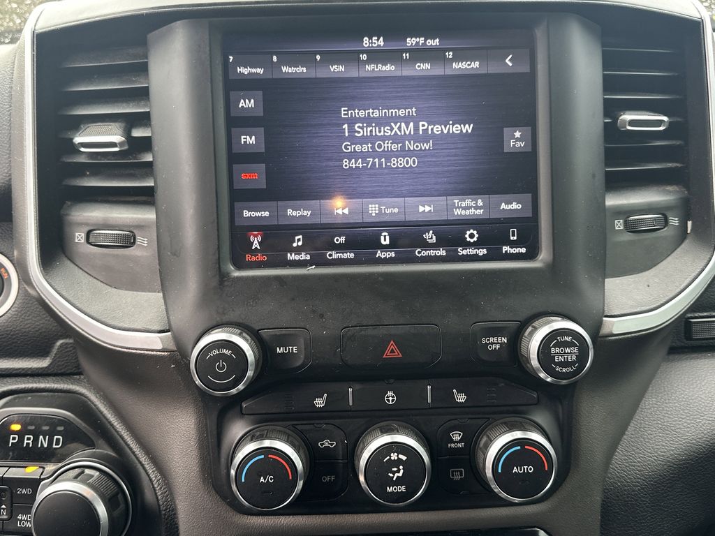 Quick Order Package 25Z Big Horn. Big Horn Level 2 Equipment Group: Uconnect 4 Radio with 8.4 Display; Rear Window Defroster; ParkSense Front/rear Park Assist with Stop; Rear View Auto Dim Mirror; Power Adjustable Pedals; Rear Power Sliding Window; Rear Dome with On/off Switch Lamp; Glove Box Lamp; Power 4-Way Driver Lumbar Adjust; 115V Auxiliary Rear Power Outlet; Power 8-Way Driver Seat; 2 USB Full Function/charge Only Media Hub; Heated Front Seats; Heated Steering Wheel; Foam Bottle Insert (door Trim Panel); Class IV Receiver Hitch; Dampened Tailgate; Security Alarm; Black Premium Power Mirrors; Big Horn Instrument Panel Badge; Remote Start System; SiriusXM Satellite Radio; 400W Inverter; Air Conditioning ATC with Dual Zone Control; 115V Auxiliary Power Outlet; Universal Garage Door Opener; 2nd Row in Floor Storage Bins; Sun Visors with Illuminated Vanity Mirrors. Night Edition: 275/55R20 OWL All Season Tires; Deluxe Cloth Bucket Seats; Black Headlamp Bezels; Body Color Premium Power Mirrors; Body Color Door Handles; Exterior Mirrors Courtesy Lamps; Auto Dim Exterior Driver Mirror; Black Exterior Truck Badging; Anti-Spin Differential Rear Axle; 20 X 9.0 Premium Paint/polished Wheels; Exterior Mirrors with Memory; Grille Surround 1 Black Texture 2 Black; Body Color Exterior Mirrors; Black Interior Accents; Dual Exhaust with Black Tips; Power-Folding Mirrors; Body Color Front Bumper; Body Color Rear Bumper with Step Pads. Quick Order Package 23Z Big Horn. Deluxe Cloth Bucket Seats. Anti-Spin Differential Rear Axle. ParkSense Front/rear Park Assist with Stop. Remote Start System. 115V Auxiliary Power Outlet. **Equipment listed is based on original vehicle build and subject to change. Please confirm the accuracy of the included equipment by calling the dealer prior to purchase.**