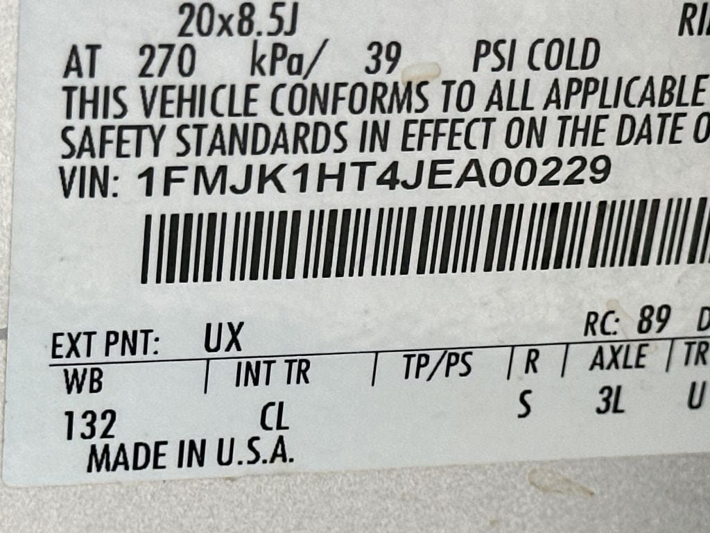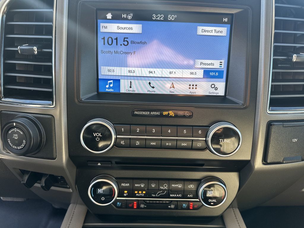 Equipment Group 202A: Power-Adjustable Pedals; Leather-Trimmed 1st and 2nd Row Seats; SYNC 3 Communications and Entertainment System; 7. 300 lbs GVWR; AM/FM Stereo CD/MP3 Player Radio; Hands-Free Foot-Activated Liftgate; Heated/ventilated Front Seats; 110V/150W AC Power Outlet; 3rd Row Vinyl Seat; 2nd Row 40/20/40 Tip and Slide Seat; Dual-Zone Electronic Air Temperature Control; Memory Package; 10-Speed Automatic Transmission with SelectShift; Chrome Platform Running Boards; Remote Start; Power Tilt/telescopic Steering Wheel; Advanced Security Pack; BLIS (Blind Spot Information System); Ambient Lighting; Heated Steering Wheel; Heated Body-Color Power Mirrors; 3rd Row Power-Folding Headrests; Intelligent Access with Push-Button Start; 3.5L EcoBoost V6 Engine; Uplevel Instrument Panel Cluster. Connectivity Package: Wireless Charging Pad; 2 Smart Charging USB Ports in 3rd Row; SYNC Connect; Wi-Fi Hotspot. Heavy-Duty Trailer Tow Package. 20 Luster Nickel-Painted Aluminum Wheels. Voice-Activated Touch-Screen Navigation System. **Equipment listed is based on original vehicle build and subject to change. Please confirm the accuracy of the included equipment by calling the dealer prior to purchase.**